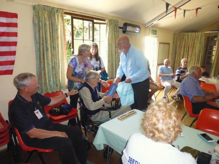 After a busy morning touring the 388th museum at Market Weston they were brought to the Village Hall together with supporting family members and group organisers. They were given a rapturous welcome by villagers and after introductory speeches outlining their courageous exploits during their time at Knettishall, everyone had lunch together thanks to the generosity of the Association.