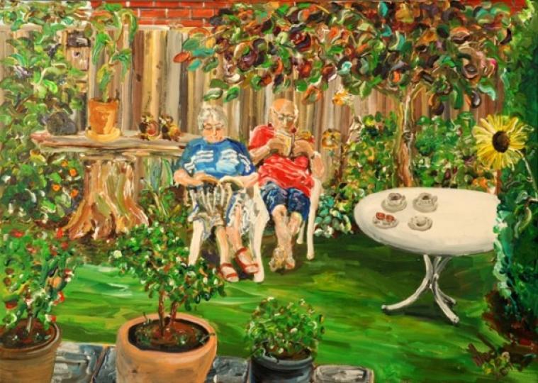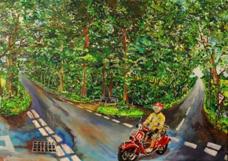 As Gerald might say, ‘You gotta boogie before the lights go out’, though don’t worry, the hall lighting will do just fine; the paintings are pretty bright. There’s lots of green.”