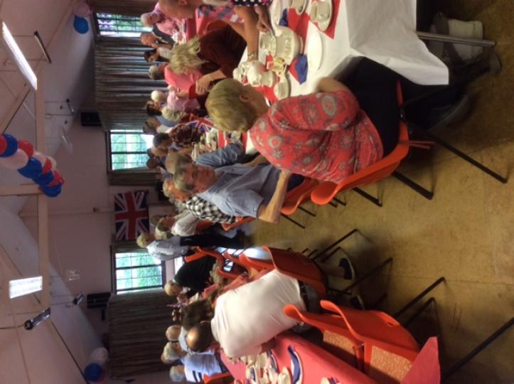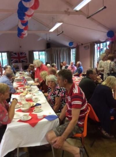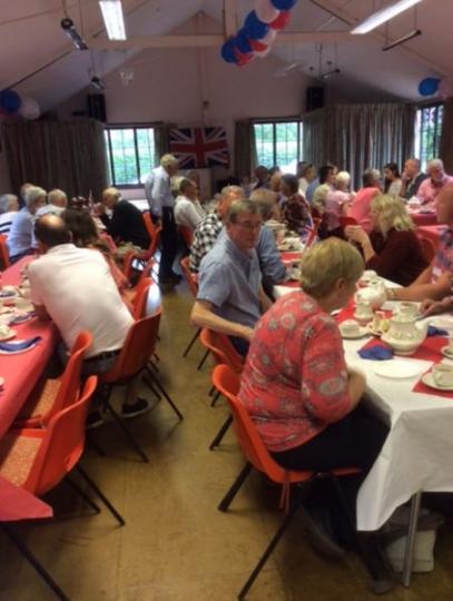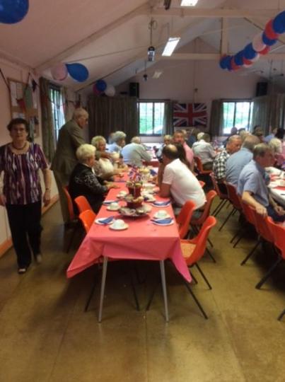 An impressive number of villagers attended the Village Hall for the Tea Party which was sponsored by the Parish Council. It was refreshing to see lots of ‘new’ faces, in spite of the wet weather! The atmosphere, though, was warm and festive, with plenty of balloons, flags and bunting to set the scene. The food was superb — the usual tea-party fare:- home made cakes and sandwiches, followed by jelly and ice cream. We were hoping for a surprise visit from ‘Her-Maj’, but she must have had a better offer!